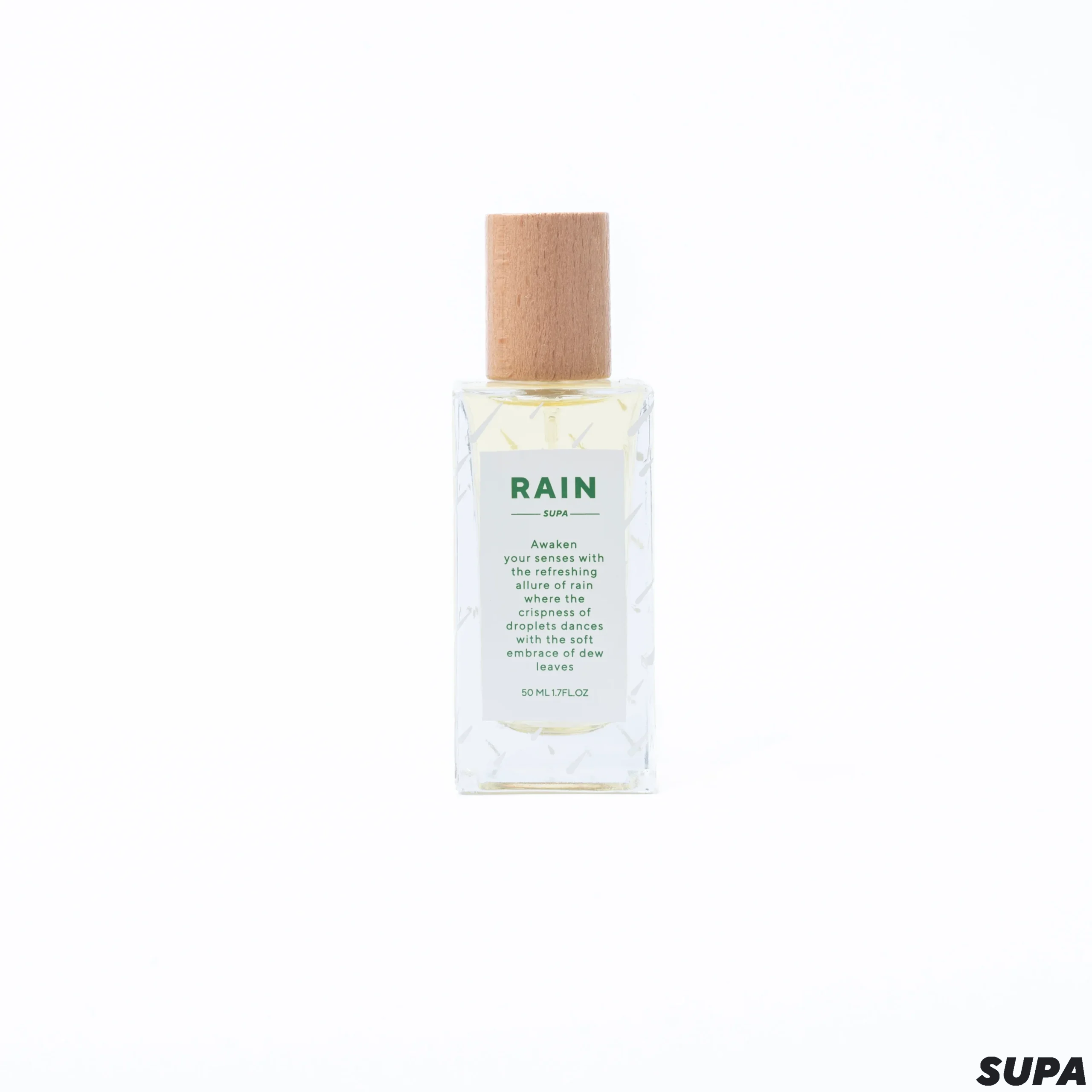 RAIN perfume captures the gentle rhythm of falling droplets, blending crisp, airy notes with the soft embrace of dew-kissed leaves. It evokes the feeling of a quiet moment after a summer storm — clean, comforting, and full of renewal.